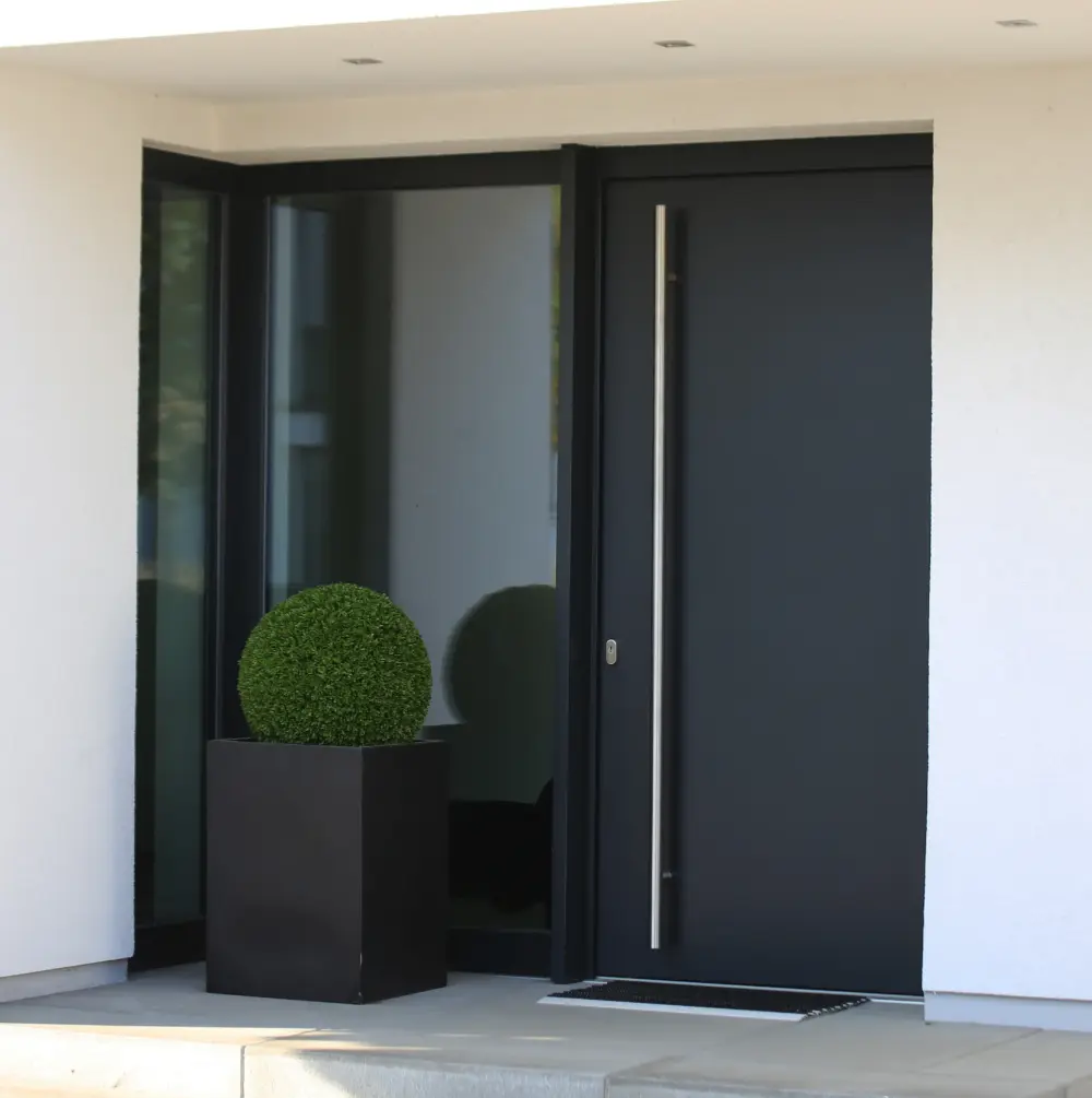 Moderne et robuste, la porte en aluminium séduit par son design contemporain et sa grande résistance. Elle offre une excellente durabilité et un large choix de finitions pour personnaliser votre façade.